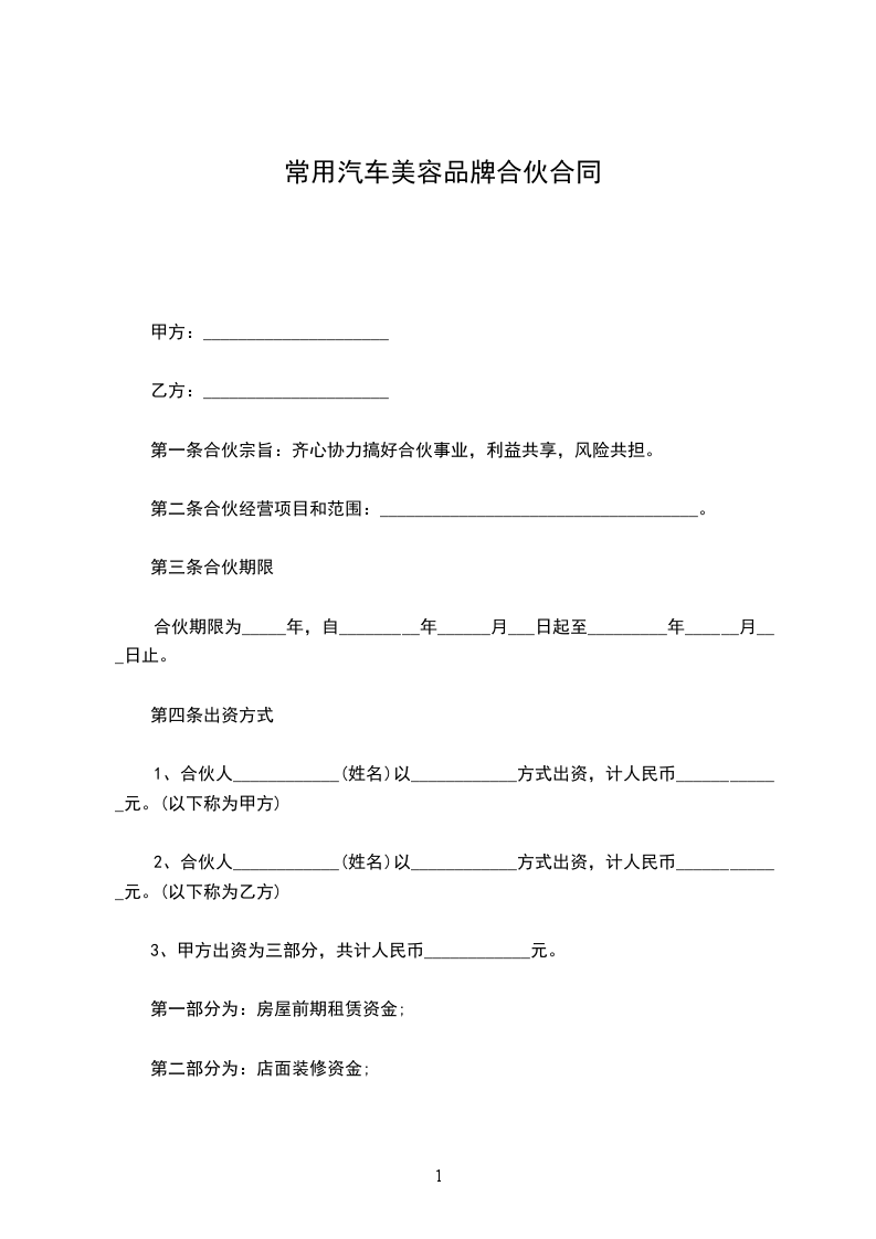 本次合伙出资共计人民币_________元,合伙期间各合伙人的出资为共有财产,不得随意请求分割,如出现亏损合伙人要求撤股,撤股的合伙人须承担亏损金额的_________%,方可撤股。