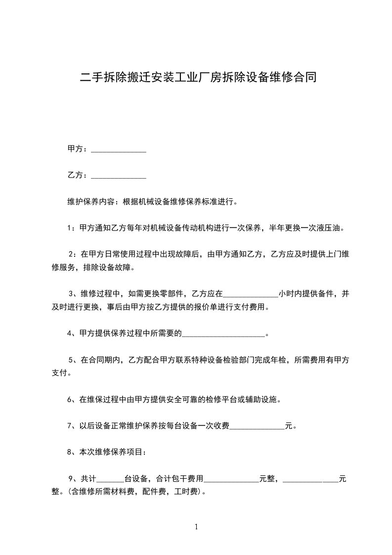 9、共计_______台设备,合计包干费用______________元整,______________元整。(含维修所需材料费,配件费,工时费)。