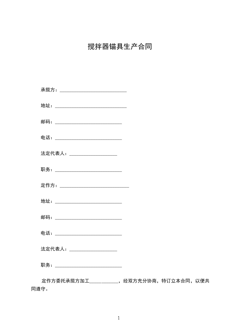 定作方委托承揽方加工____________,经双方充分协商,特订立本合同,以便共同遵守。