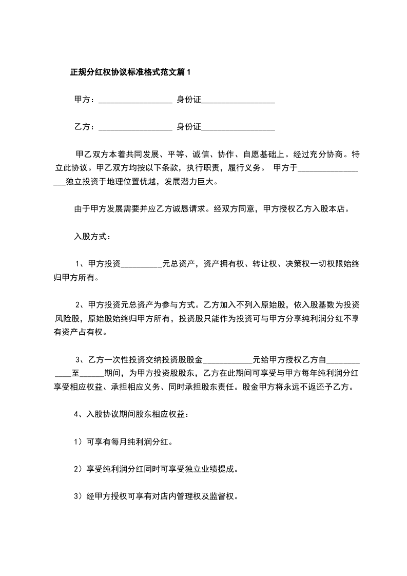 正规分红权协议标准格式范文篇2