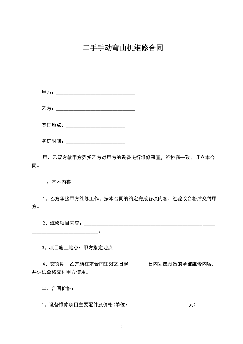 4、交货期:乙方须在本合同生效之日起________日内完成设备的全部维修内容,并调试合格交付甲方使用。