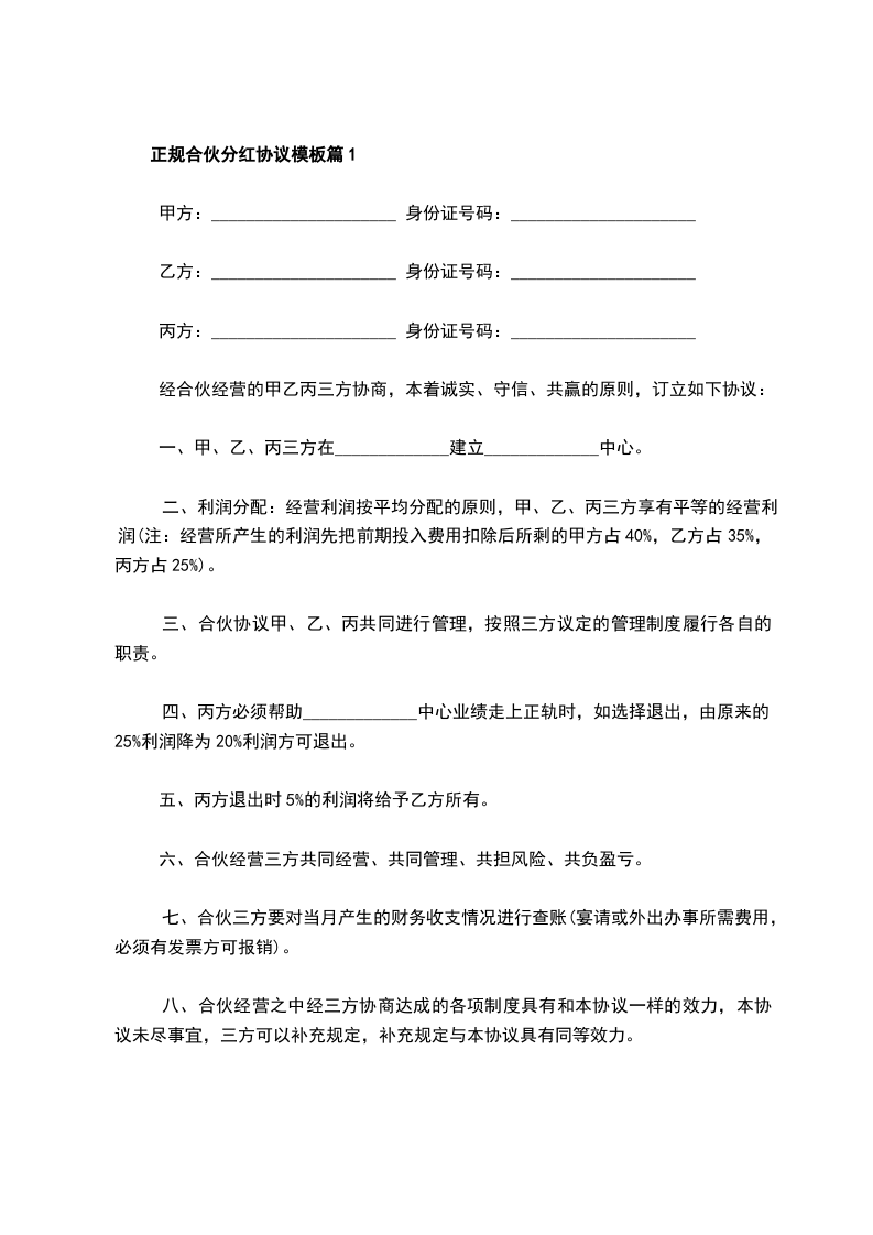 正规合伙分红协议样例篇10