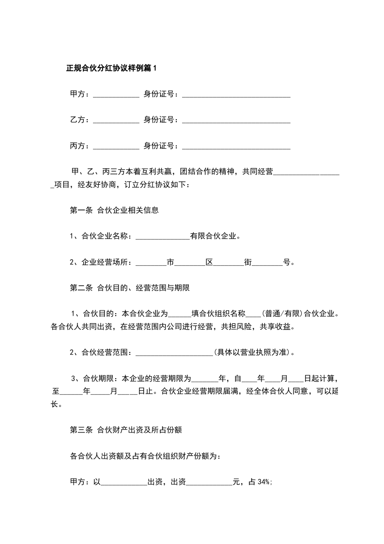 正规合伙分红协议样例篇2