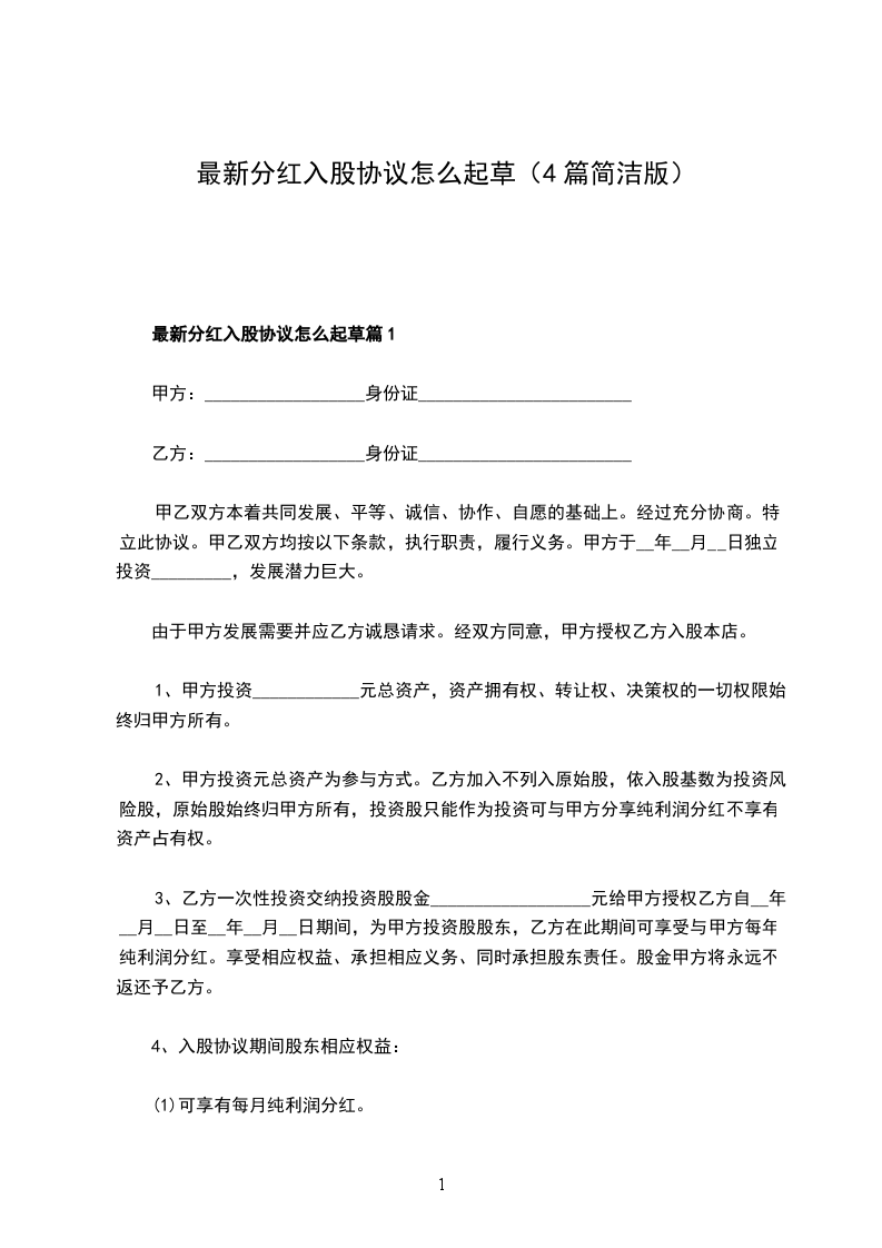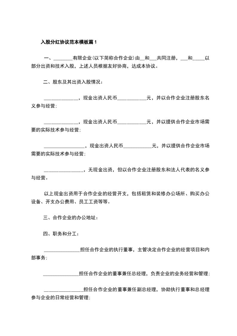 入股分红协议范本模板篇2