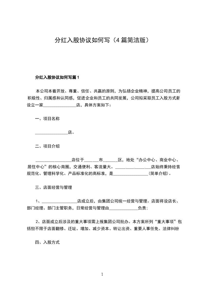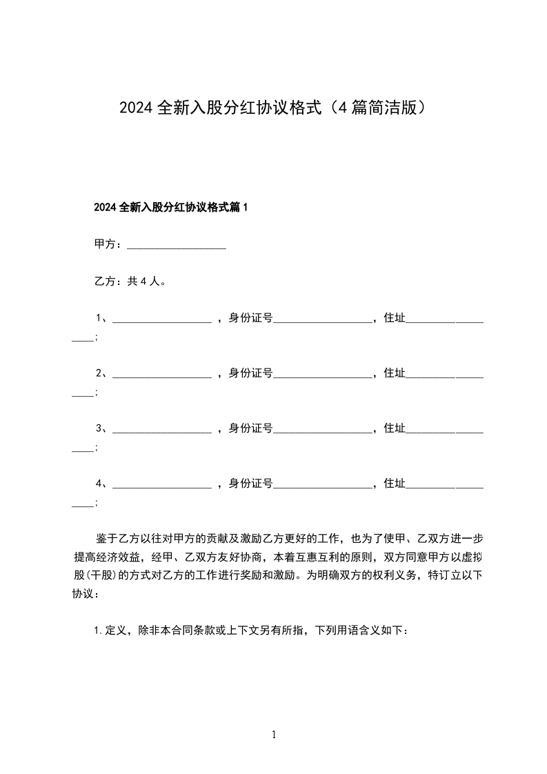 入股分红协议范本模板篇1
