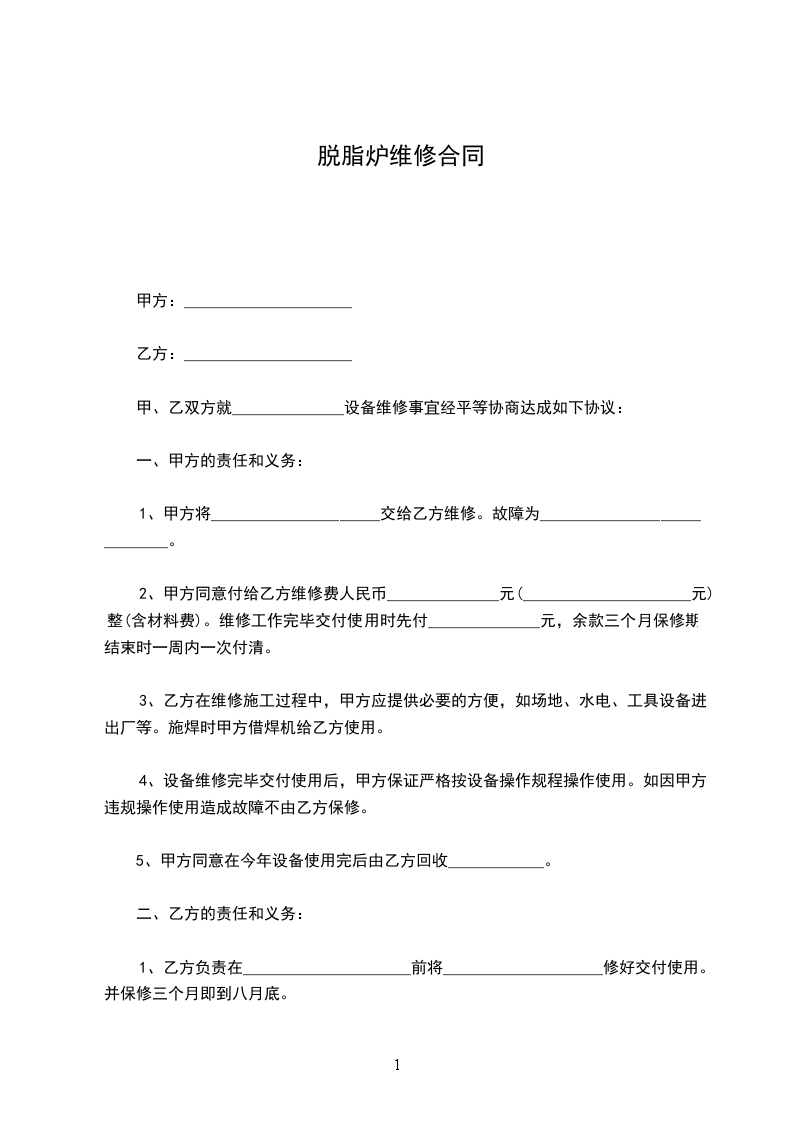 甲、乙双方就______________设备维修事宜经平等协商达成如下协议: