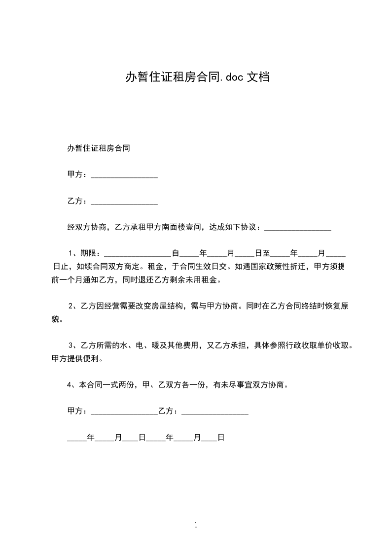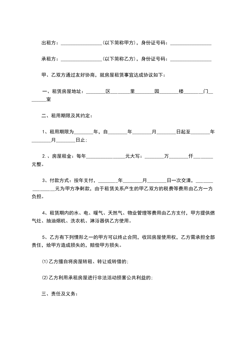 一、租赁房屋地址:________区________里________园________楼________门________室