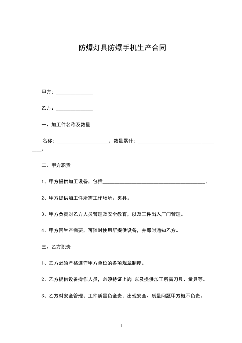 一、合作方式:双方合作方式为甲方委托乙方加工___________________________。乙方负责生产,甲方负责销售。