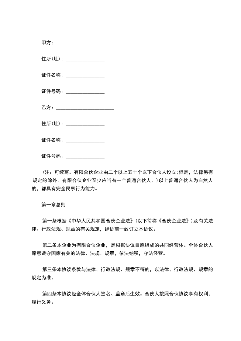 (注:可续写。有限合伙企业由二个以上五十个以下合伙人设立;但是,法律另有规定的除外。有限合伙企业至少应当有一个普通合伙人。)以上普通合伙人为自然人的,都具有完全民事行为能力。
