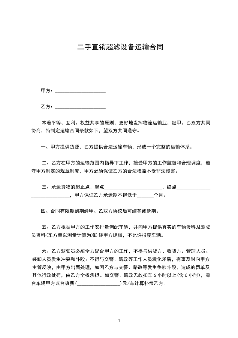 本着平等、互利、权益共享的原则,更好地发挥物流运输业,经甲、乙双方共同协商,特制定运输合同条款如下,望双方共同遵守。