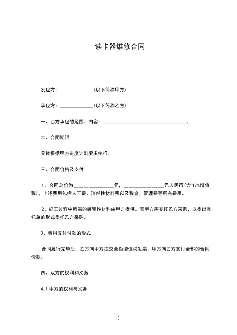 9、共计_______台设备,合计包干费用______________元整,______________元整。(含维修所需材料费,配件费,工时费)。