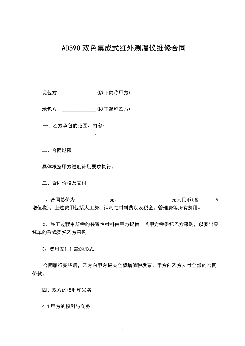 1.1、乙方承接甲方________________________修理工作。并按本合同规定的要求,经验收合格后交付甲方。