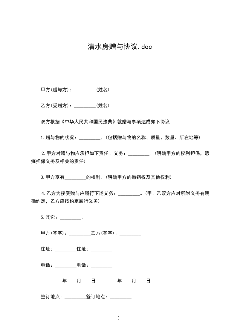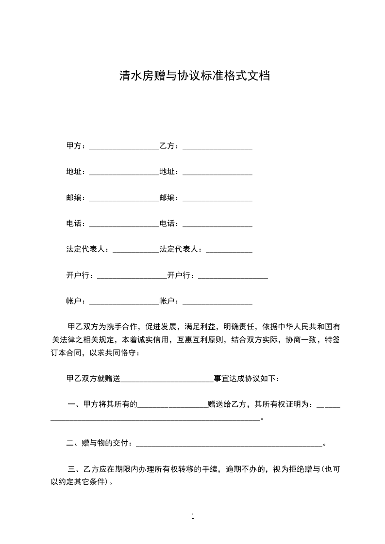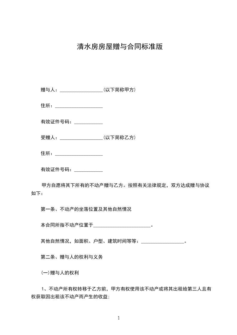 赠与人:__________________(以下简称甲方)