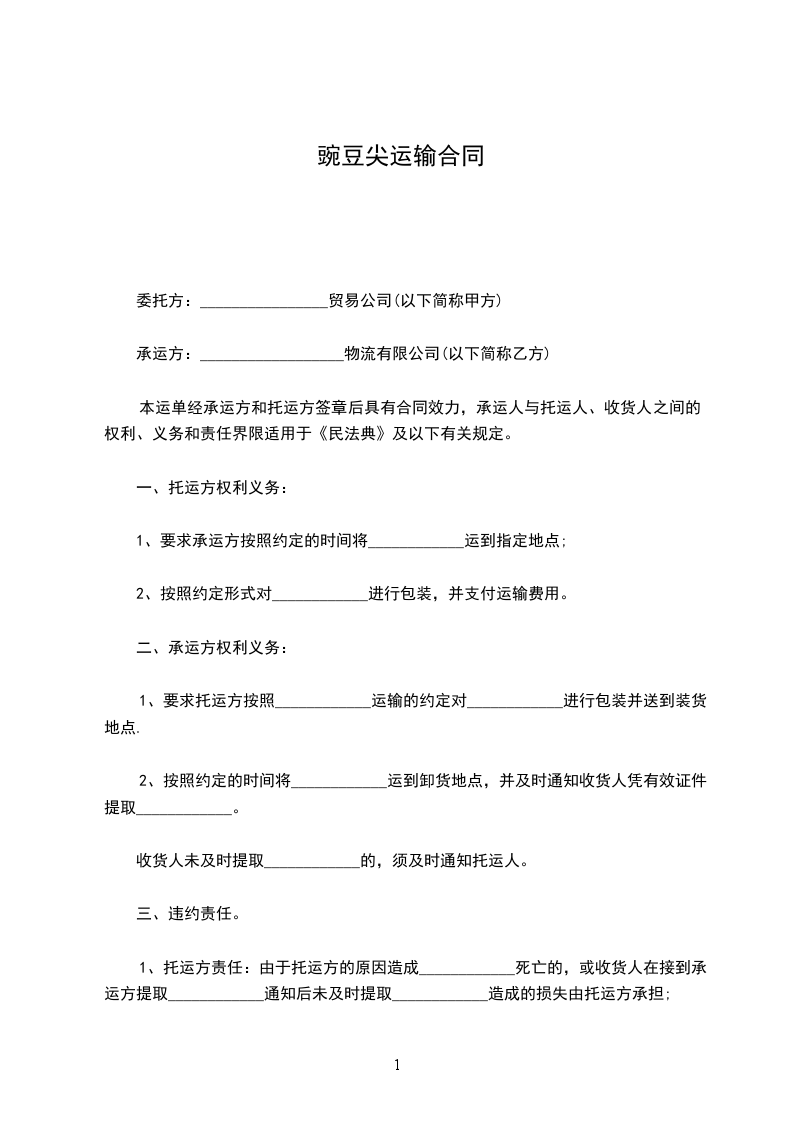 1、要求承运方按照约定的时间将____________运到指定地点;