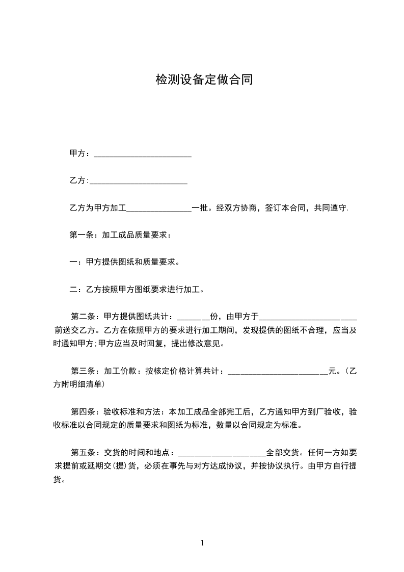 一:甲方提供图纸和质量要求。