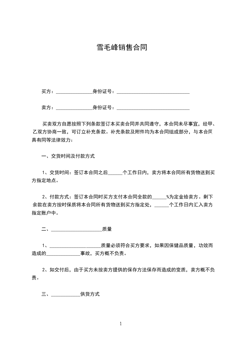 1、交货时间:签订本合同之后______个工作日内,卖方将本合同所有货物送到买方指定地点。