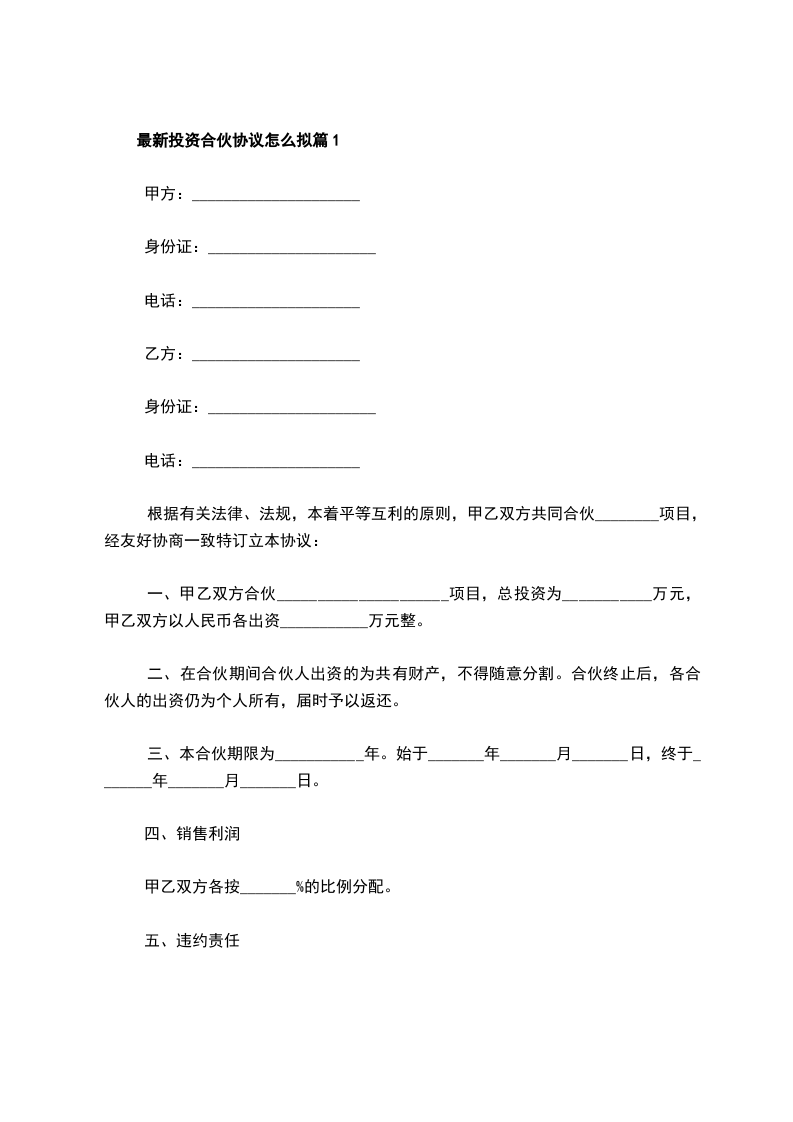 丙:姓名:________________身份证号码________________________出资金额________元联系方式________占投资总额的________%.