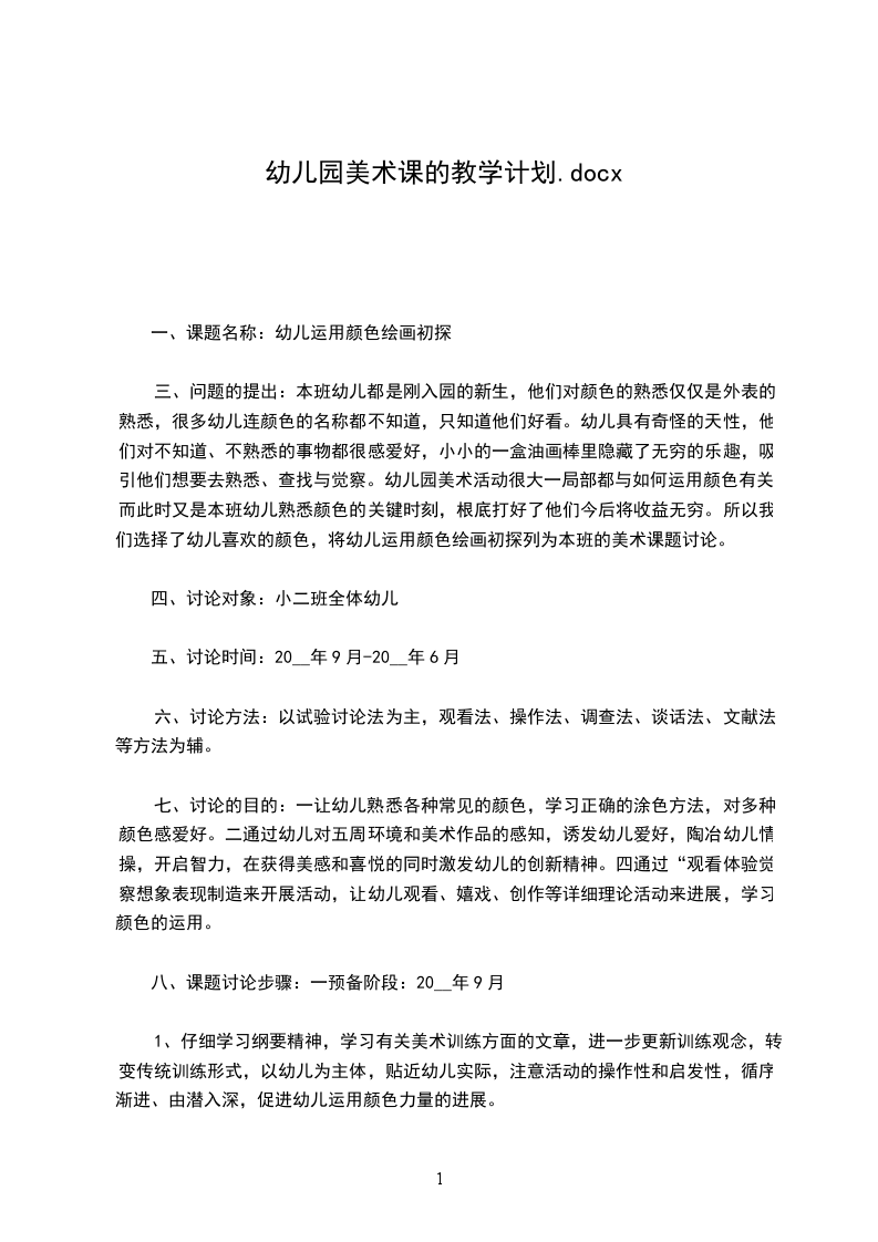 3、根据幼儿的实际状况制定讨论方案。二施行阶段:20__年10月20__年6月第一阶段20__年9月20__年1月