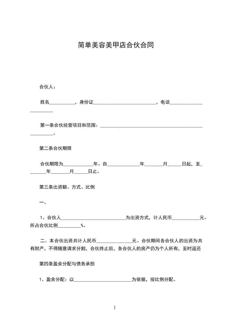 (一)合伙人姓名:________________________