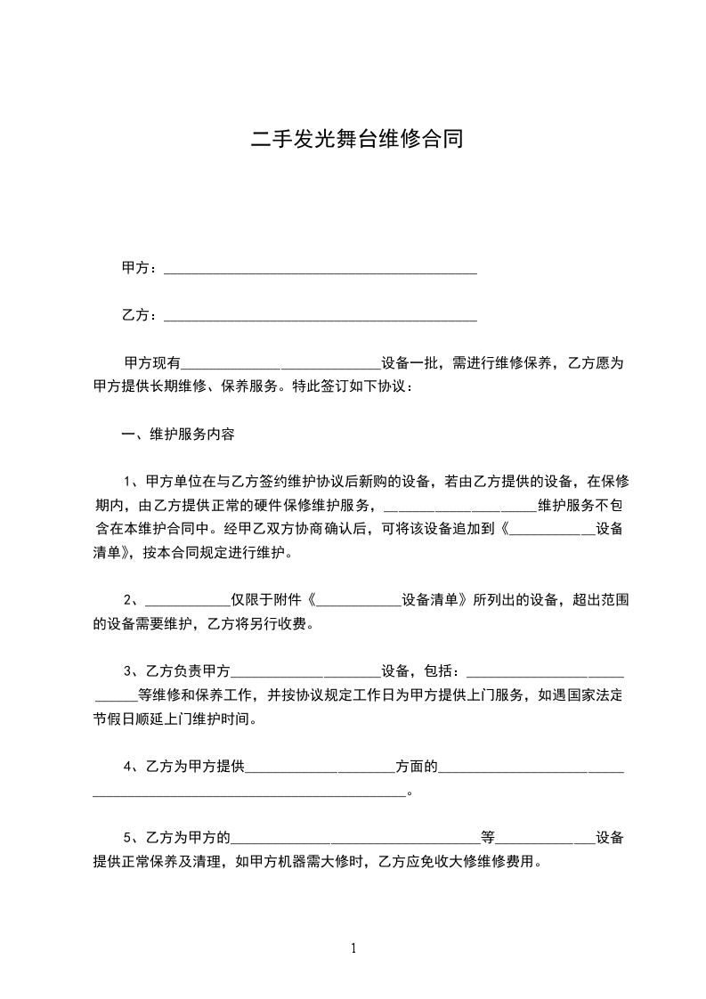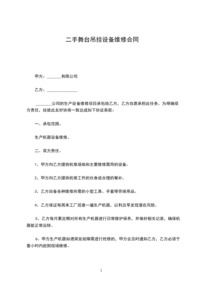 1.1、乙方承接甲方____________________________修理工作。并按本合同规定的要求,经验收合格后交付甲方。