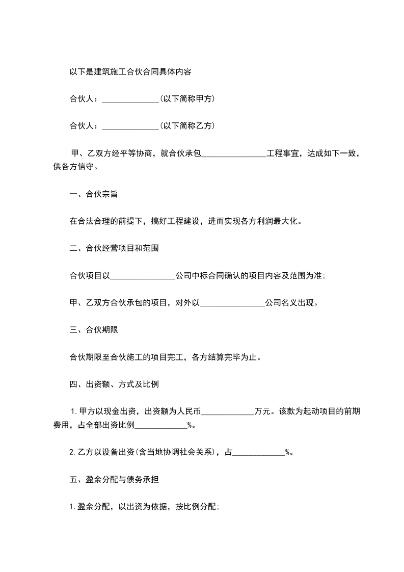 以下是建筑施工合伙合同具体内容