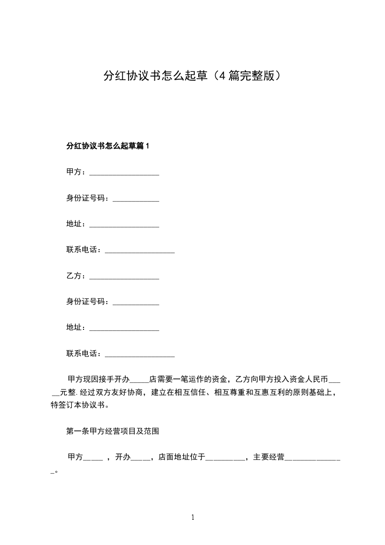 二、分红协议期限 从____________起到__________________止。分红的依据及计算办法