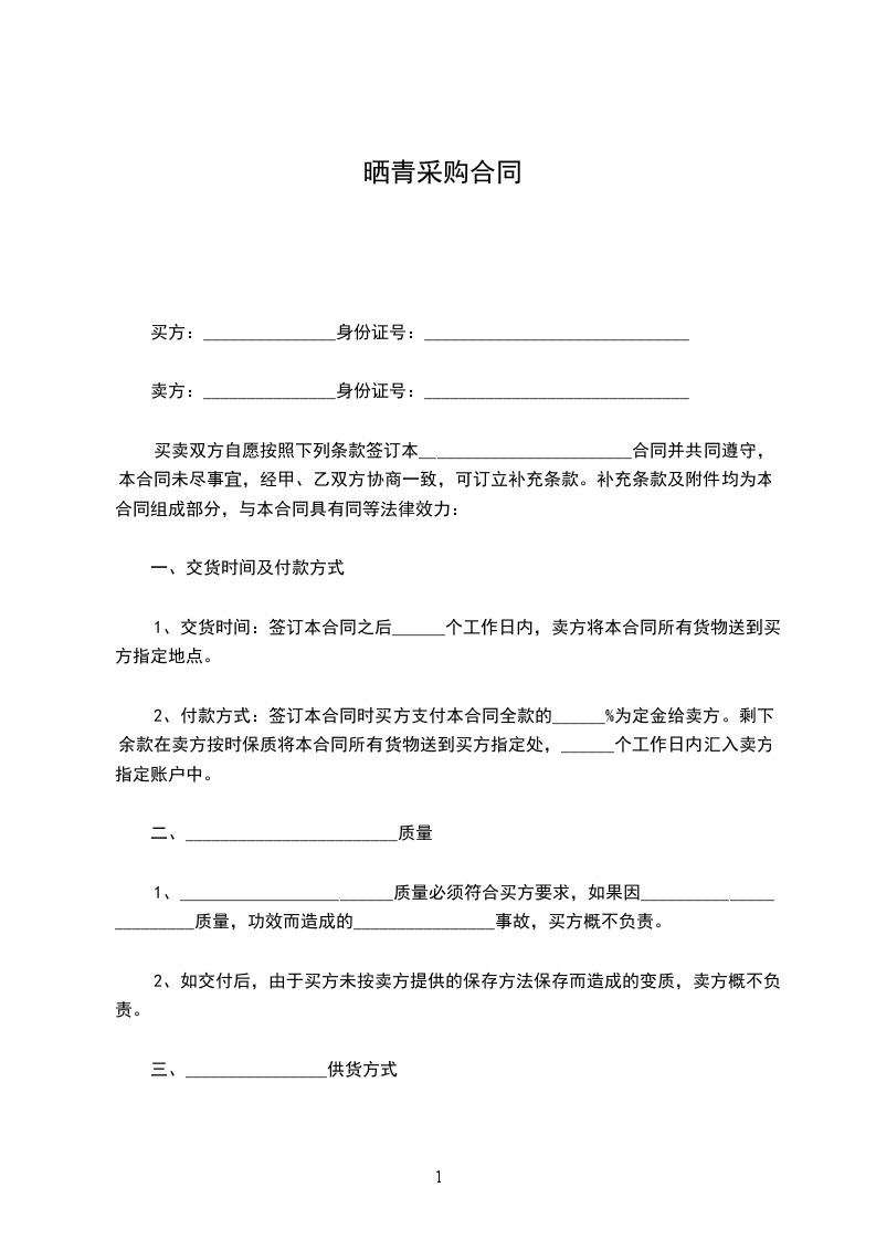 二、本合同有效期为一年,自___年___月___日生效,至___年___月___日止,其效力及于有效期内甲方和乙方有关购买和出售货物的所有协议(包括订单和附件)(略)。