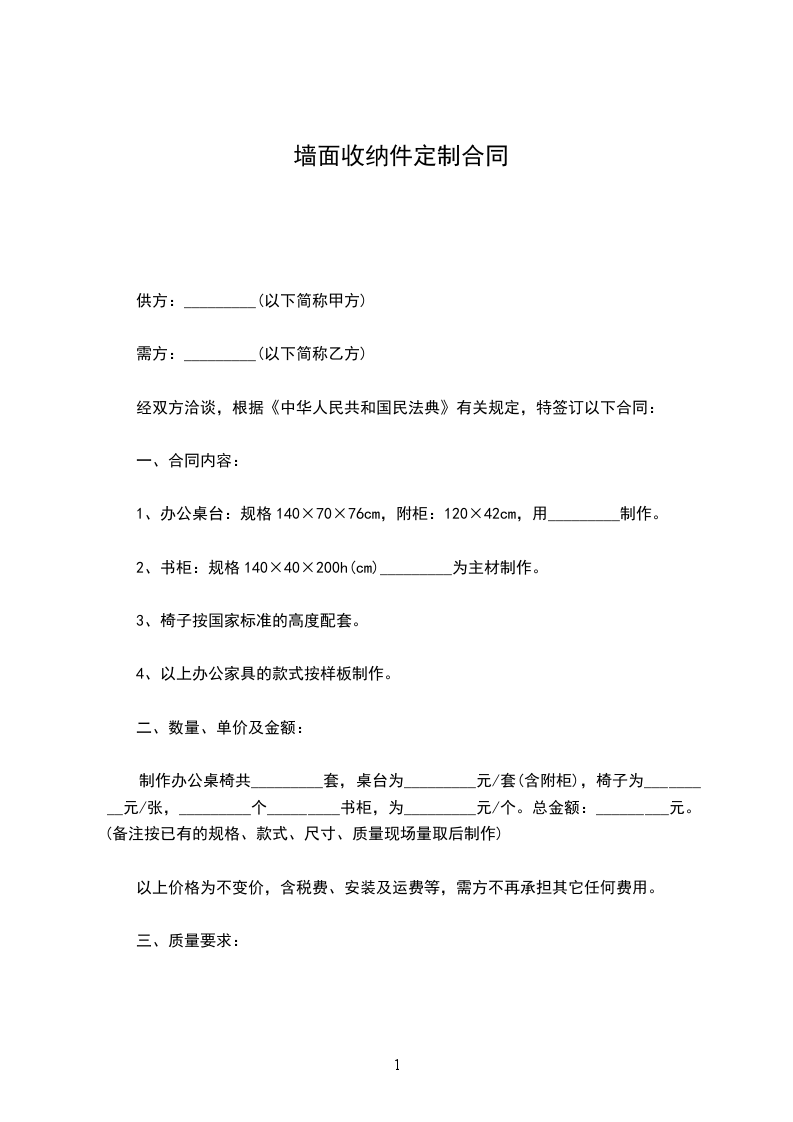 制作办公桌椅共_________套,桌台为_________元/套(含附柜),椅子为_________元/张,_________个_________书柜,为_________元/个。总金额:_________元。(备注按已有的规格、款式、尺寸、质量现场量取后制作)