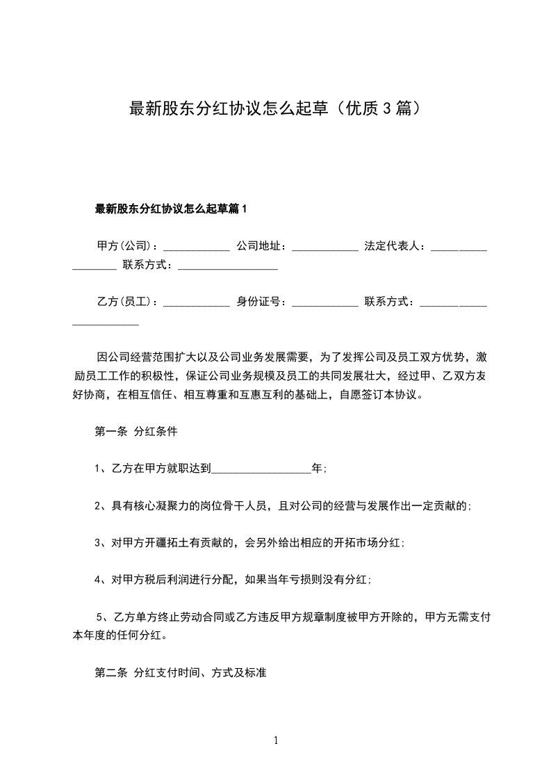 最新股东分红协议篇1