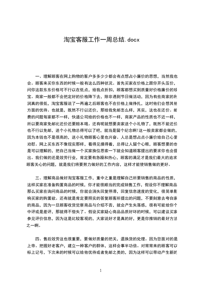四、售后效劳这也很重要,要做好质量的把关,退换货的处理。因为您面对的是上帝。把握好老客户,建立一种客户的群体,这样会事半功倍。对常常来的顾客可以标上记号,下次来的时候可以给他优待或者免邮之类的,因为这样可以带动产生新的顾客。一般顾客觉得东西好都会介绍给自己的伴侣或者同事,或者比方买衣服,同事觉得这衣服好看,问在哪买的,这时新的订单不就来了吗。所以在聊旺旺的时候要专心,真诚的为顾客效劳,让他们真正感觉到上帝的待遇。做好网店销售要把握技巧,不是随听凭便简简洁单就可以做成的,要多学习擅长总结,这样才能让工作更加顺当流畅。工作总结来说,淘宝客服的主要职责就是特地负责招呼买家,答复买家的询问,向买家介绍商品。