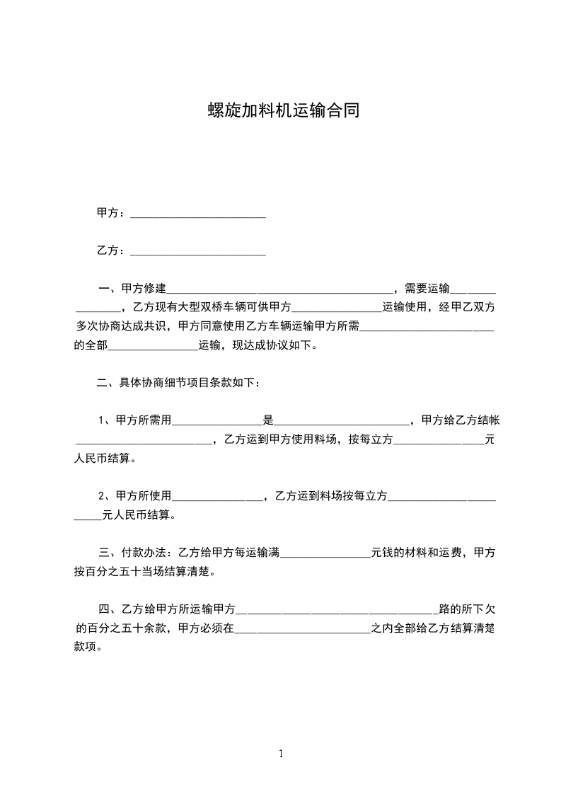 3、付款办法:乙方给甲方每运输满______________元钱的材料和运费,甲方按百分之五十当场结算清楚。