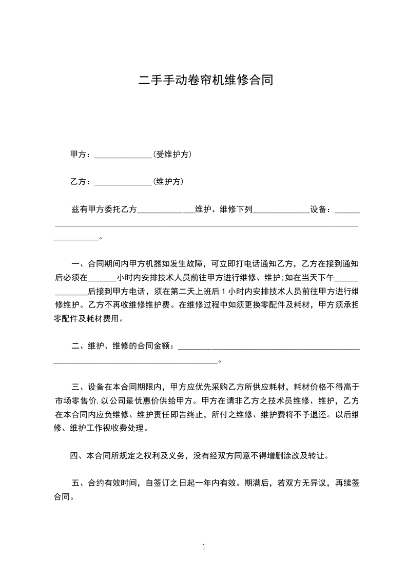 二手电动卷板机维修合同