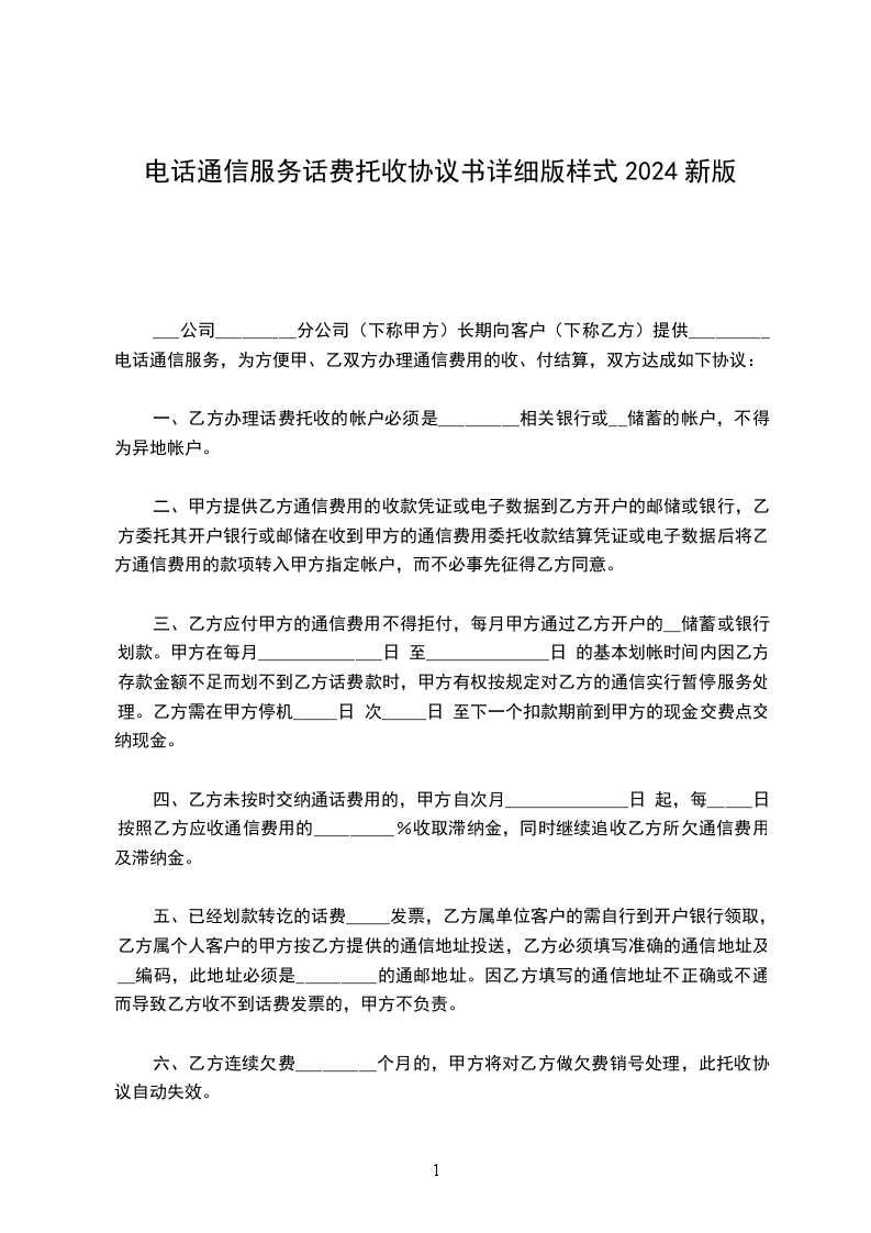 _________公司_________分公司(下称甲方)长期向客户(下称乙方)提供_________电话通信服务,为方便甲、乙双方办理通信费用的收、付结算,双方达成如下协议:
