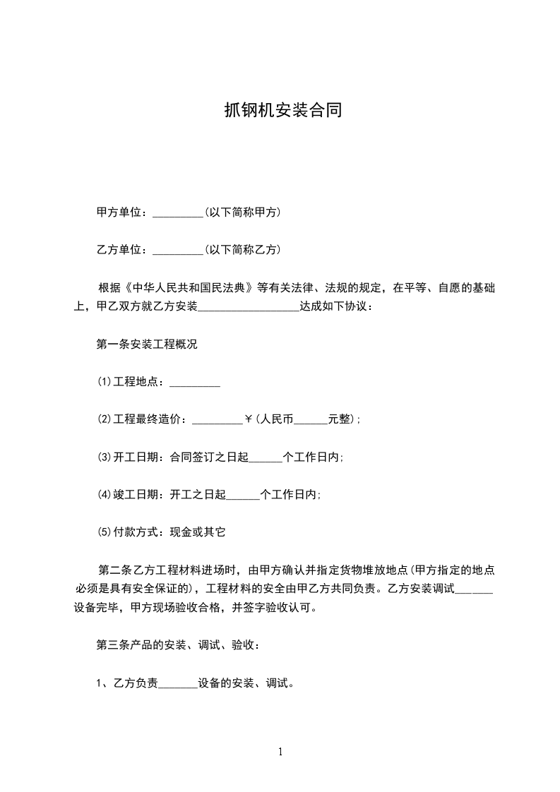 根据《中华人民共和国民法典》等有关法律、法规的规定,在平等、自愿的基础上,甲乙双方就乙方安装__________________达成如下协议: