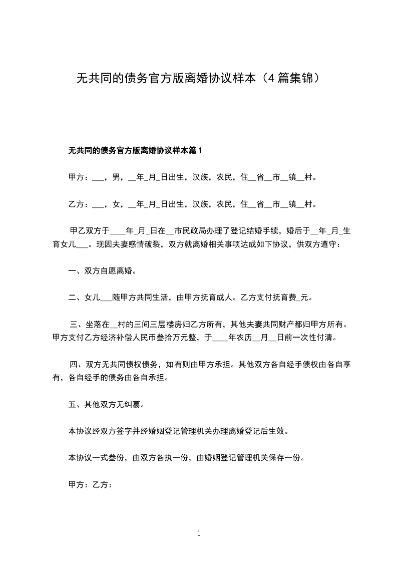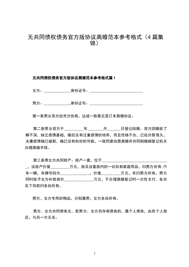 无共同债权债务官方版协议离婚范本怎么写篇4