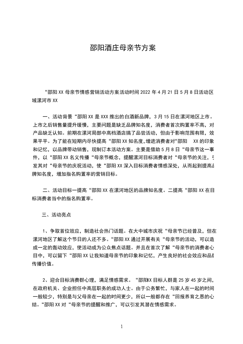 “邵阳XX母亲节情感营销活动方案活动时间2024年4月21日5月8日活动区域漯河市XX