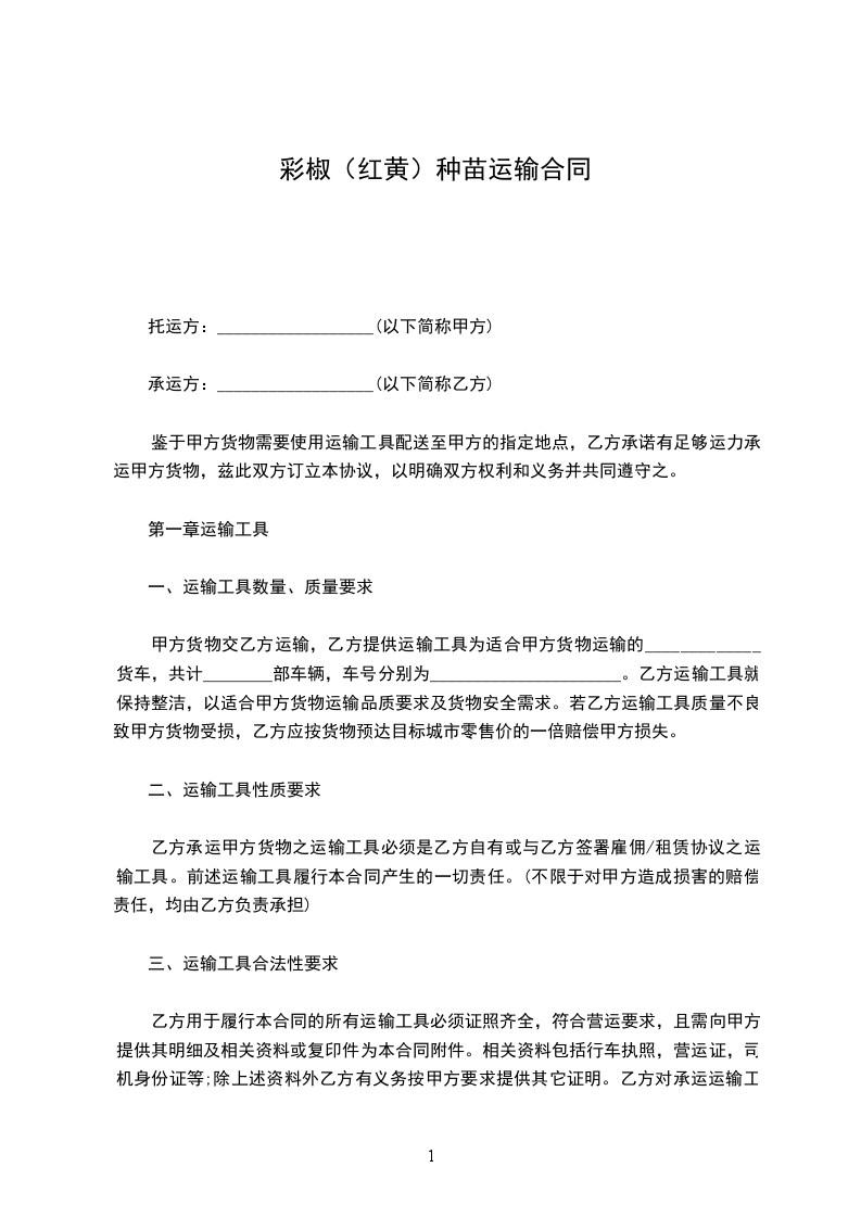承运方:__________________(以下简称乙方)
