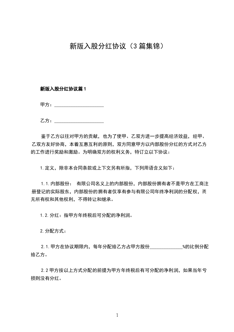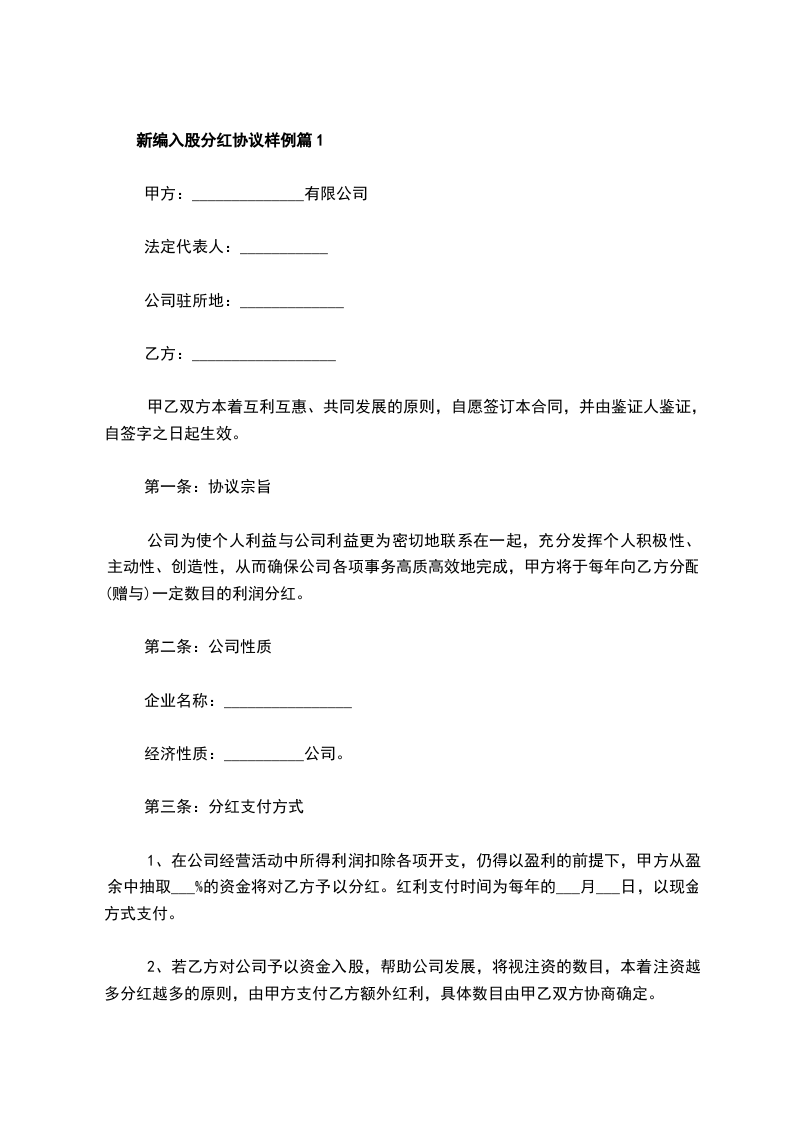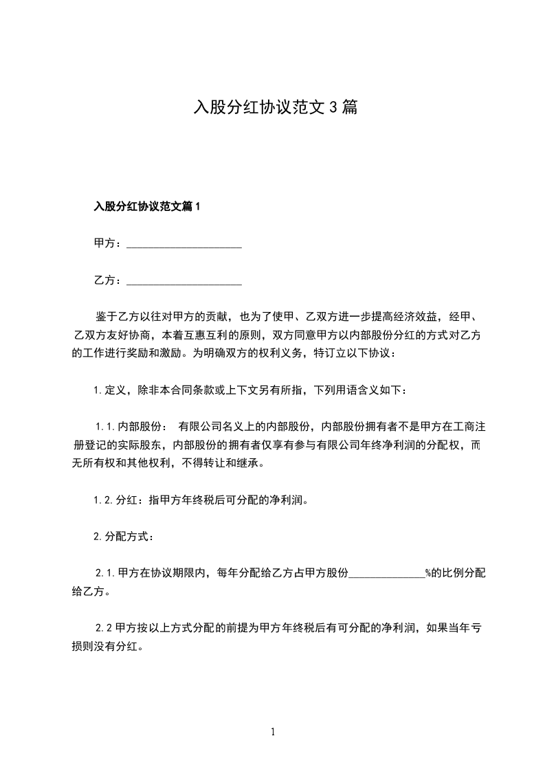 2.1 甲方在协议期限内,每年分配给乙方共____________的干股,即甲方将年终税后净利润的_____________分配给乙方。