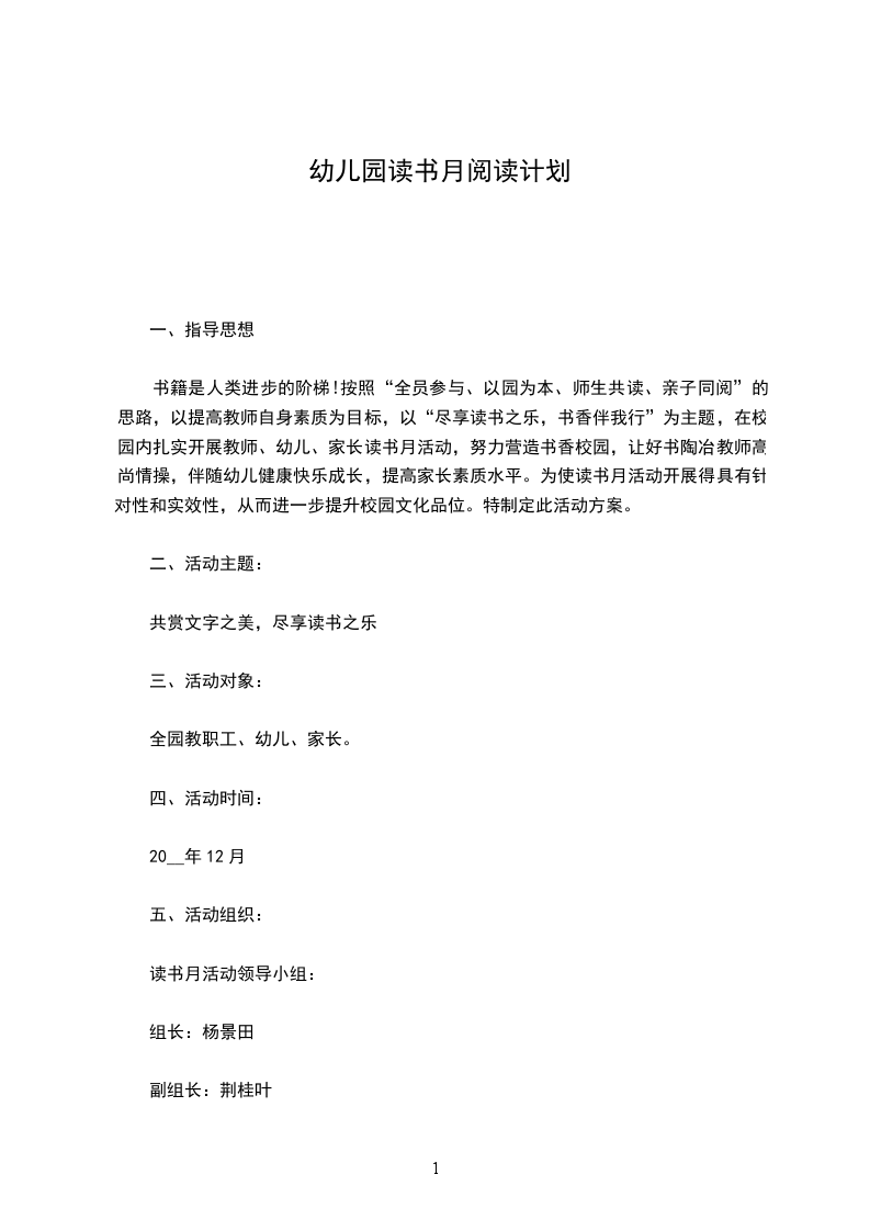 4、 催促炊事人员遵章办事,严把食品卫生关。根据上级部门的要求,连续做好午餐24小时留样工作,严防餐饮事故的发生。 幼儿园早期阅读方案方案 篇7 一.班级状况分析 新的学期新的盼望,新的学期新的挑战。在经过大班第一学期的共同学习和生活后,我们一起迎来孩子们在幼儿园的最终一学期。本班现进入幼小连接的关键时期,上学期也做了许多的前期工作如:一节课的时间为30-40为了使幼儿入学后能较快的适应学校的生活节奏,本学期对孩子的作息制度做些调整,如早晨参加了早读的活动要求孩子在8:00-8:40之前入园。在结合大班孩子对时钟的熟悉,要求孩子在每天入园时记录自己来园的时间,让孩子养成我能准时入园的好习惯,是孩子渐渐形成时间概念。 二.保育工作 保育工作是做好训练教学工作的重要前提条件,要求班上每个教师理解班上每一个孩子的生活习惯以及身体素养等方面的状况,以确保大家在今后的保育工作中能做到更有针对性的去开展,常抓不懈。