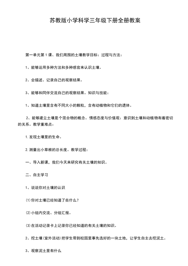 第一单元第1课、我们周围的土壤教学目标:过程与方法:
