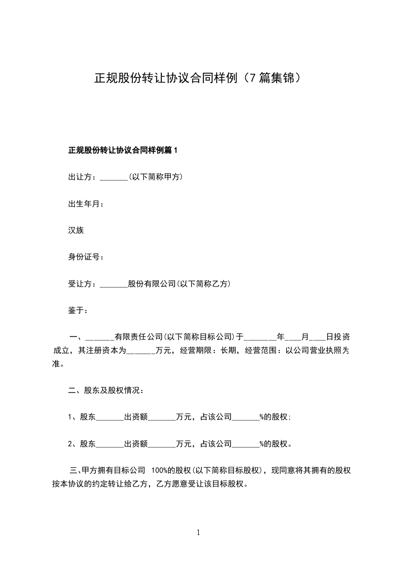 1、转让方(甲方)转让给受让方(乙方)_________________有限公司的_____%的股权,受让方同意接受。