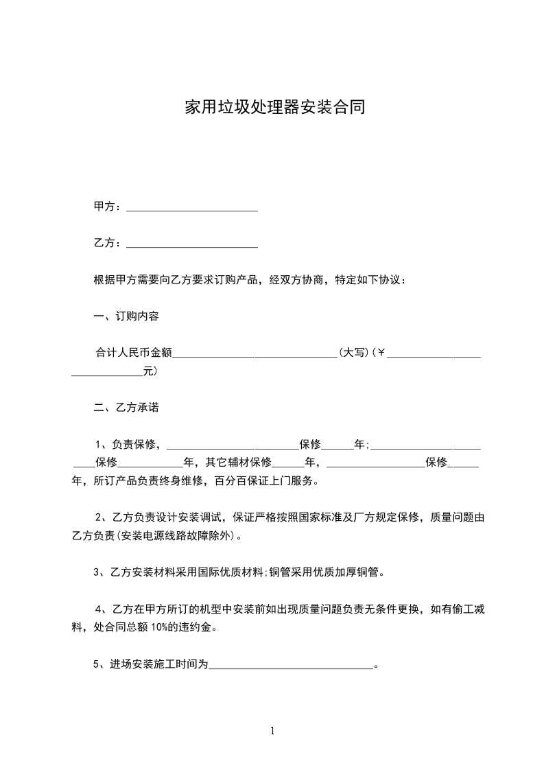 4、乙方在甲方所订的机型中安装前如出现质量问题负责无条件更换,如有偷工减料,处合同总额10%的违约金。