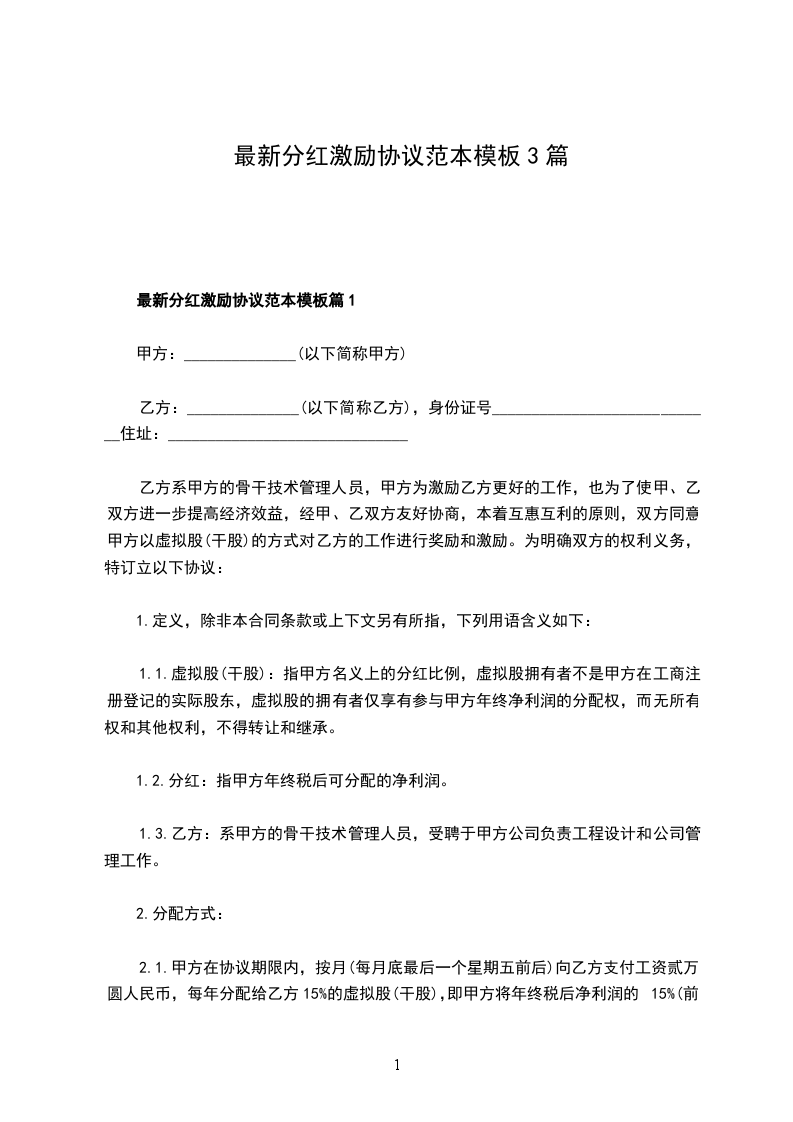 乙方系甲方的骨干技术管理人员,甲方为激励乙方更好的工作,也为了使甲、乙双方进一步提高经济效益,经甲、乙双方友好协商,本着互惠互利的原则,双方同意甲方以虚拟股(干股)的方式对乙方的工作进行奖励和激励。为明确双方的权利义务,特订立以下协议: