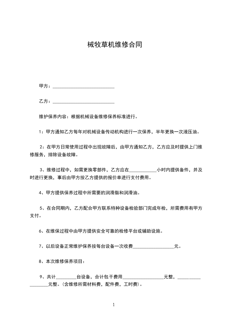 草坪机械维修合同