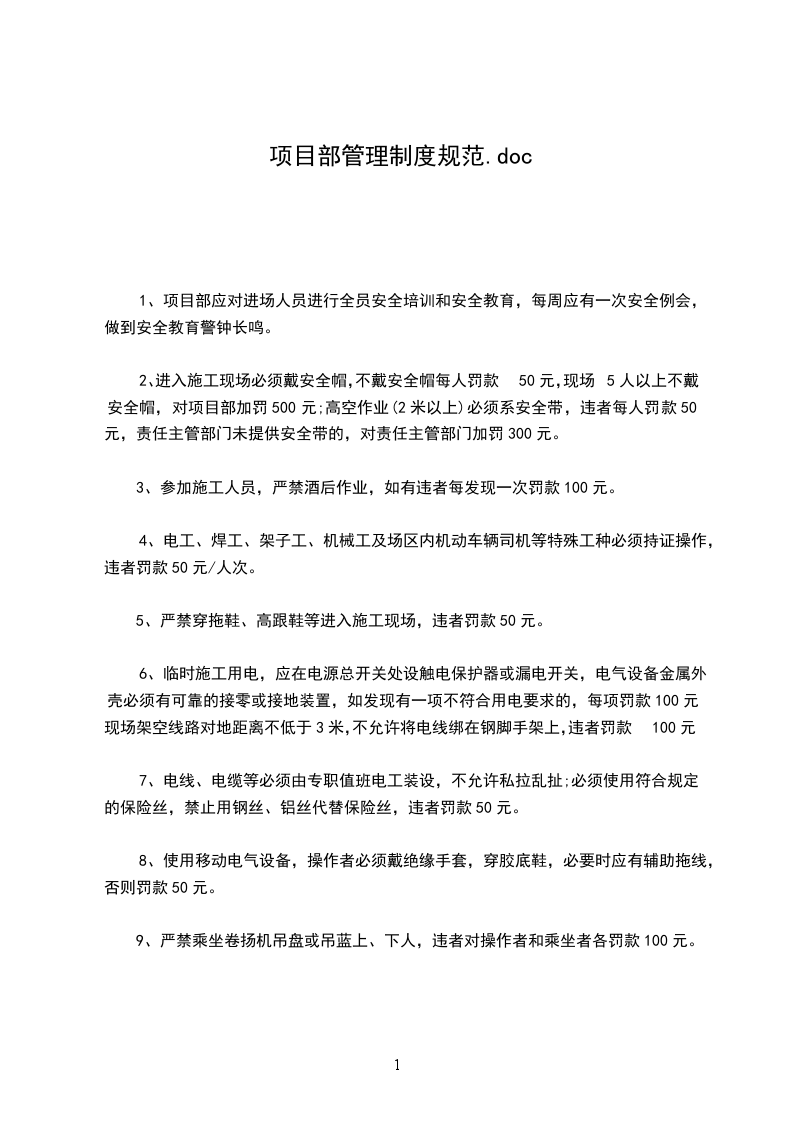 一、项目部全部员工应遵守本项目一切规章制度、通告及公告。