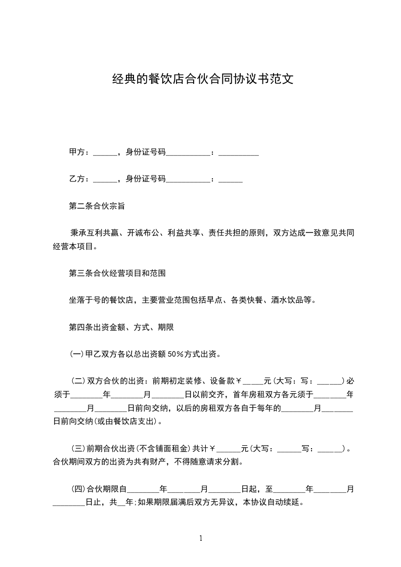 第一条甲乙双方自愿合伙经营,总投资约为_____________________元,全部由甲方出资;乙方以经营该________________________所需技术性管理作为出资。