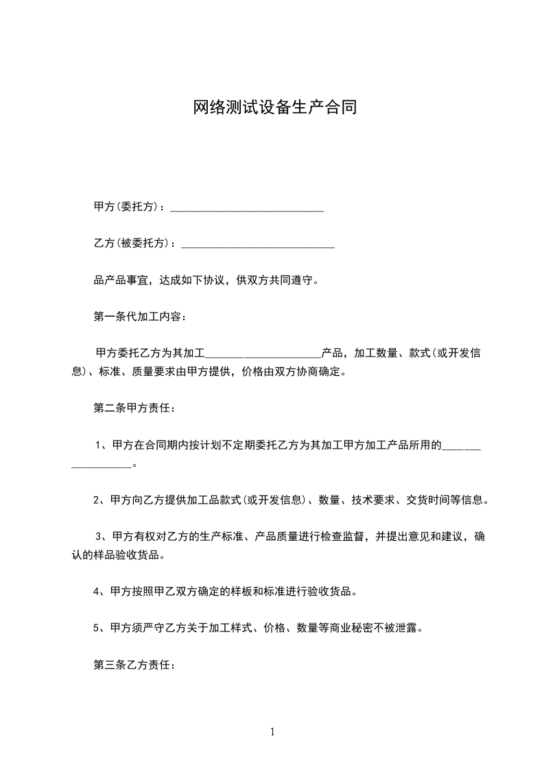 网络测试设备生产合同