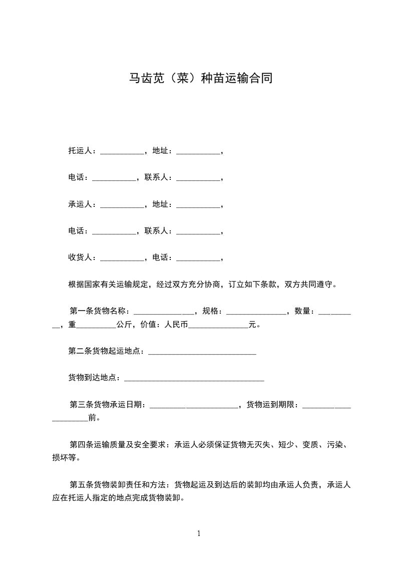 托运方:(以下简称甲方)