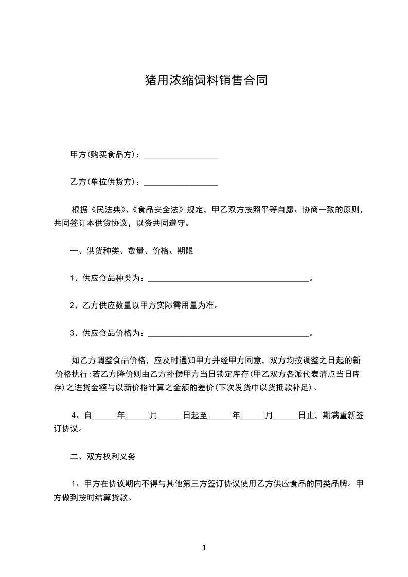 乳猪料销售合同