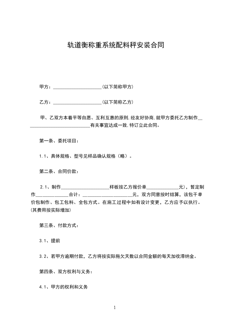 轨道衡称重系统配料秤定做合同